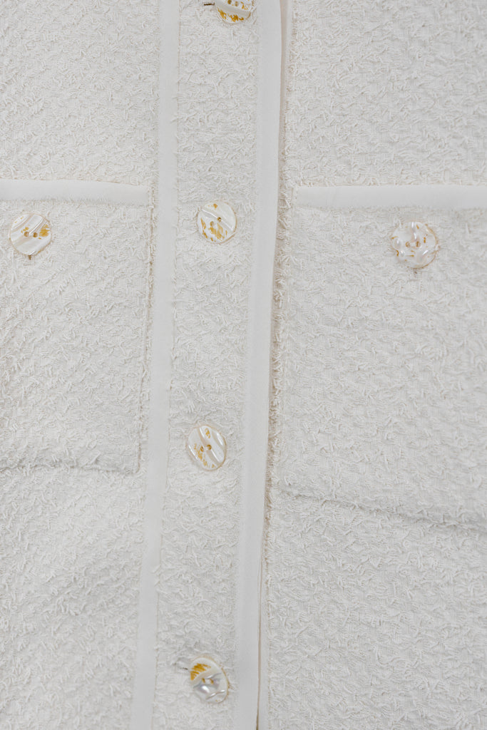 - Jacke aus strukturierten Tweed mit rohen Chiffonstreifen